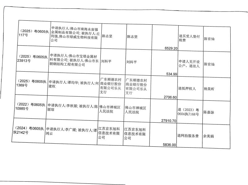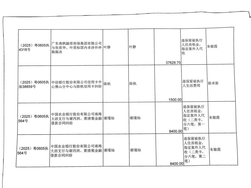 本院在执行(2025)粤0605执20673号等案件过程中,根据《最高人民法院关于执行款物管理工作的规定》,拟向下列被执行人、案外人发放案款(详见《拟发放案款清单》),现予以公示,公示期为三天。
