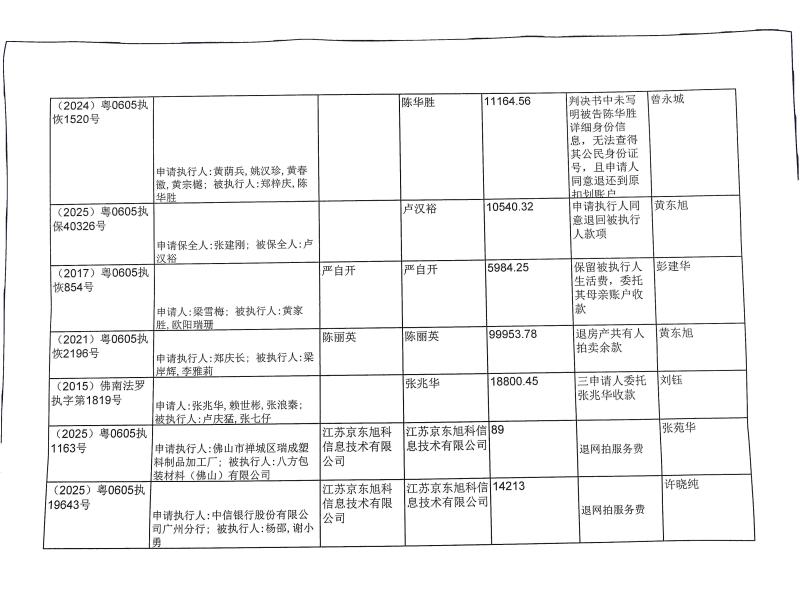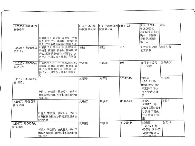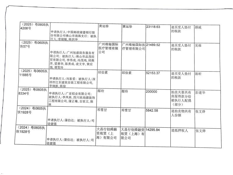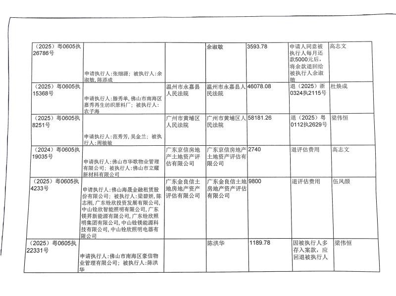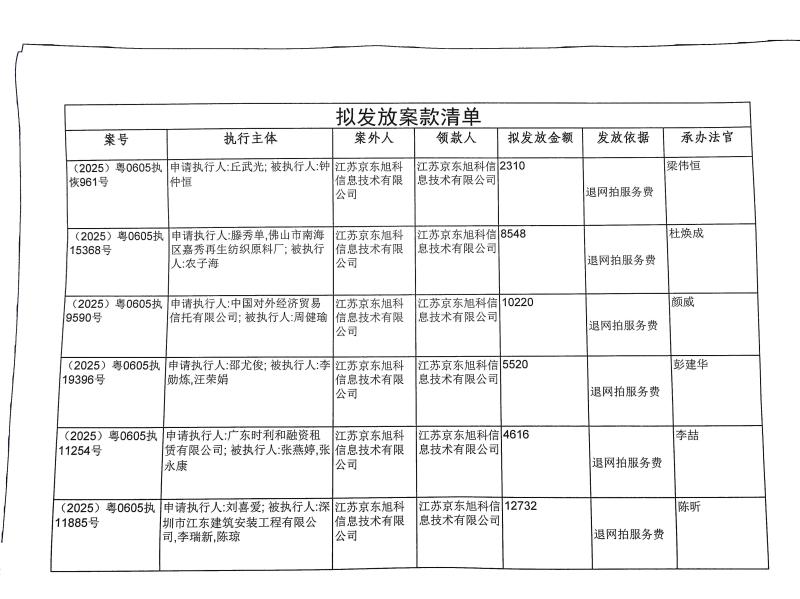 本院在执行(2025)粤0605执15368号等案件过程中,根据《最高人民法院关于执行款物管理工作的规定》,拟向下列被执行人、案外人发放案款(详见《拟发放案款清单》),现予以公示,公示期为三天。