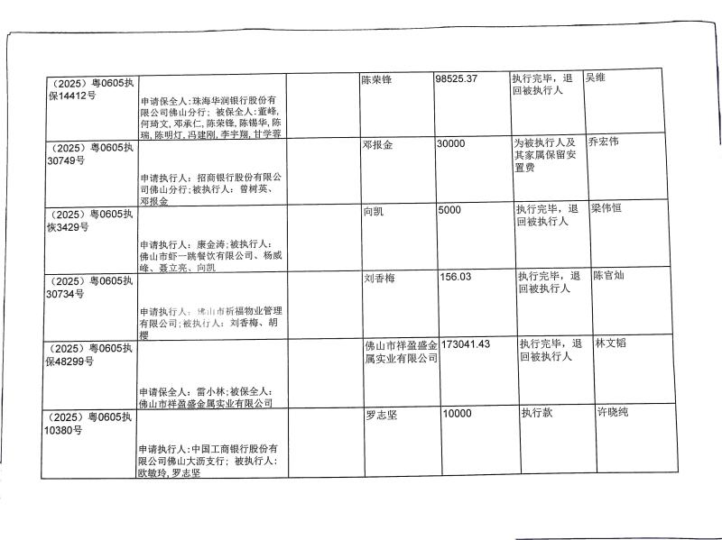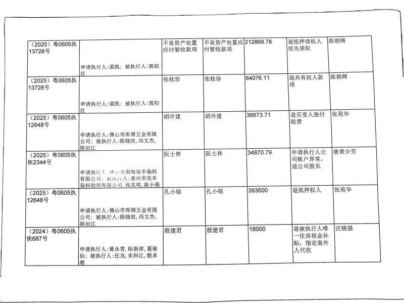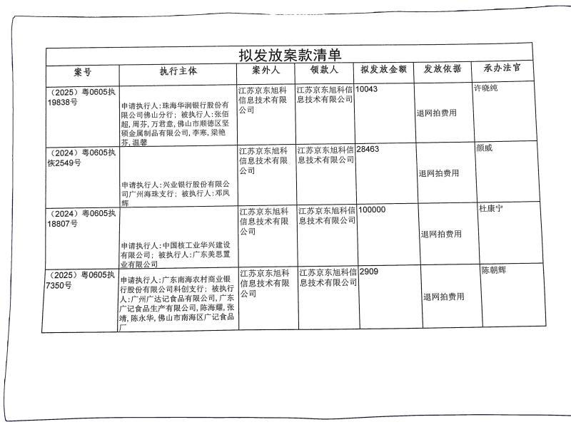 本院在执行(2025)粤0605执19838号等案件过程中,根据《最高人民法院关于执行款物管理工作的规定》,拟向下列被执行人、案外人发放案款(详见《拟发放案款清单》),现予以公示,公示期为三天。