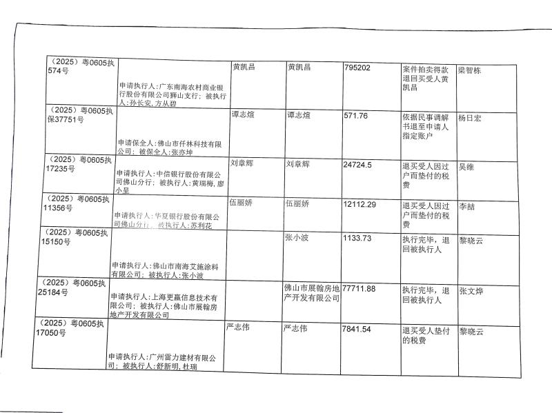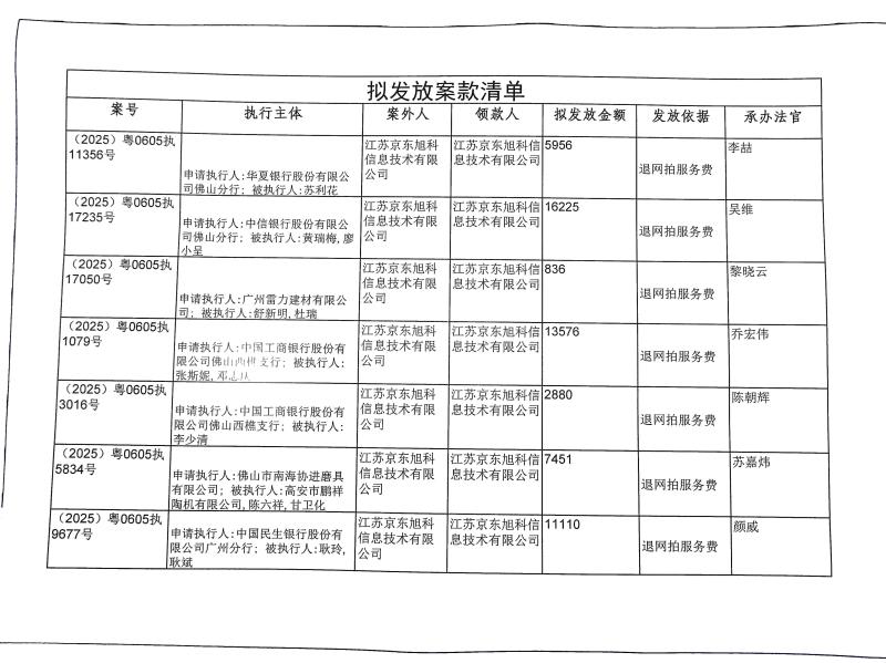 本院在执行(2025)粤0605执11356号等案件过程中,根据《最高人民法院关于执行款物管理工作的规定》,拟向下列被执行人、案外人发放案款(详见《拟发放案款清单》),现予以公示,公示期为三天。