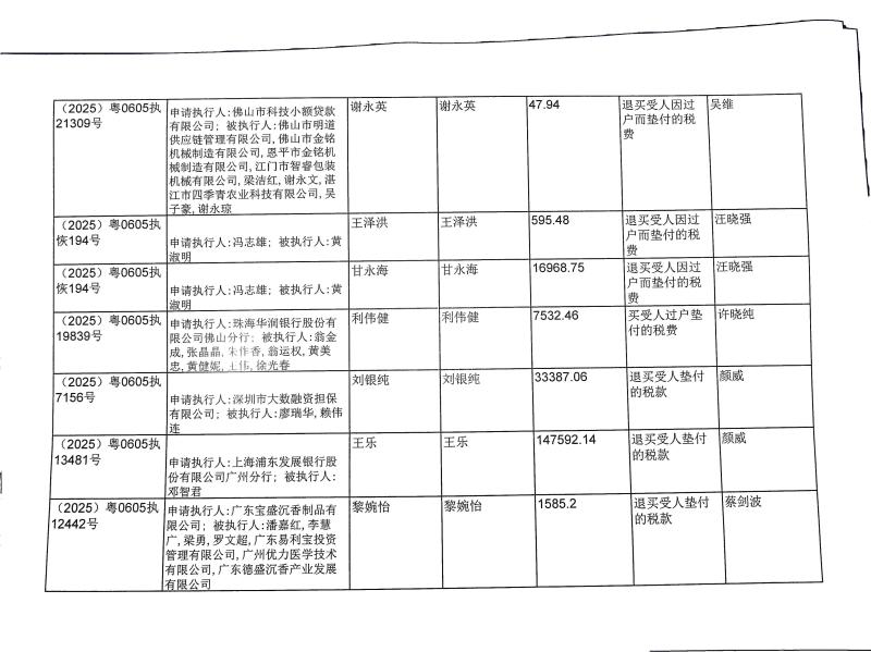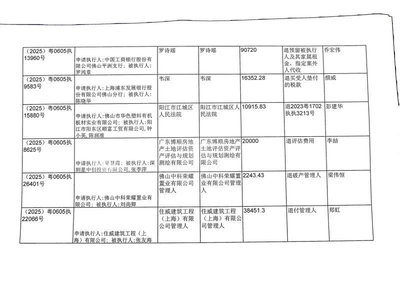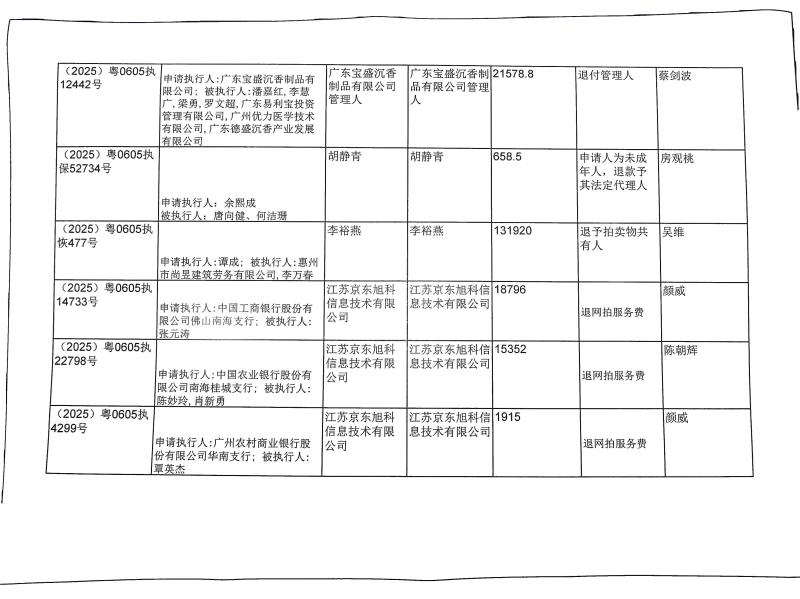 本院在执行(2025)粤0605执13961号等案件过程中,根据《最高人民法院关于执行款物管理工作的规定》,拟向下列被执行人、案外人发放案款(详见《拟发放案款清单》),现予以公示,公示期为三天。