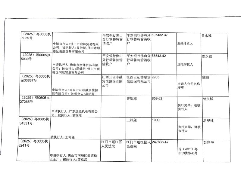 本院在执行(2025)粤0605执17677号等案件过程中,根据《最高人民法院关于执行款物管理工作的规定》,拟向下列被执行人、案外人发放案款(详见《拟发放案款清单》),现予以公示,公示期为三天。