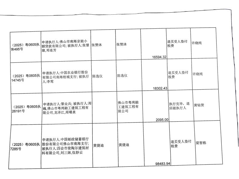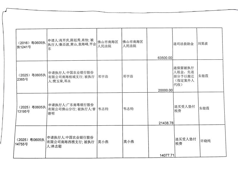 本院在执行(2025)粤0605执1075号等案件过程中,根据《最高人民法院关于执行款物管理工作的规定》,拟向下列被执行人、案外人发放案款(详见《拟发放案款清单》),现予以公示,公示期为三天。