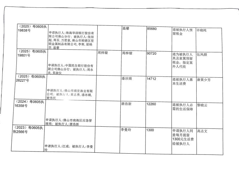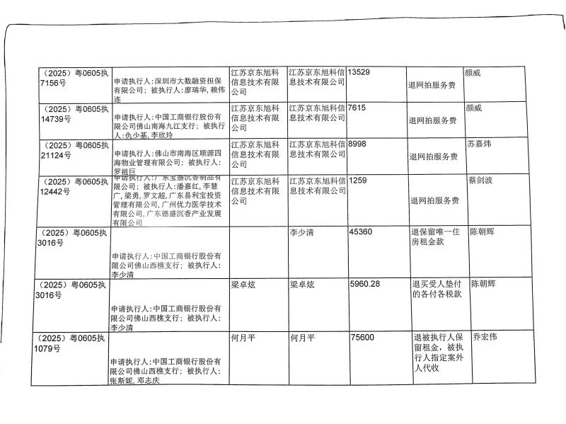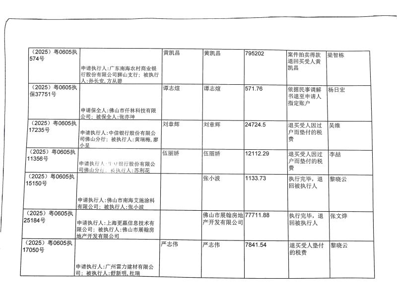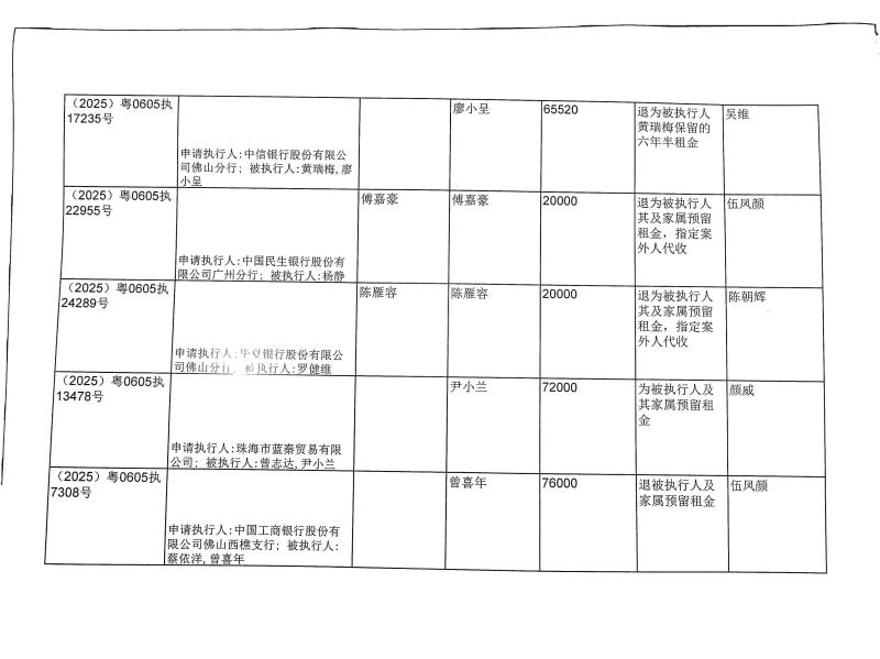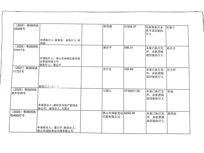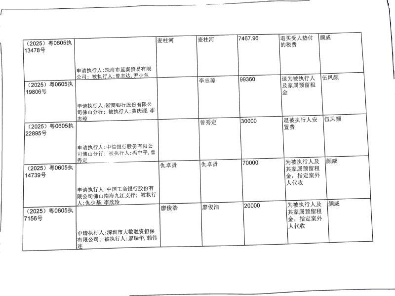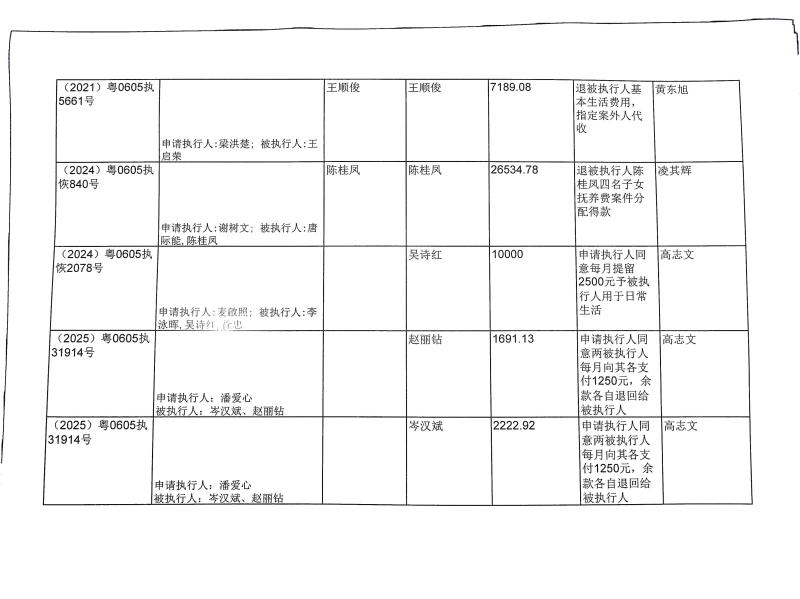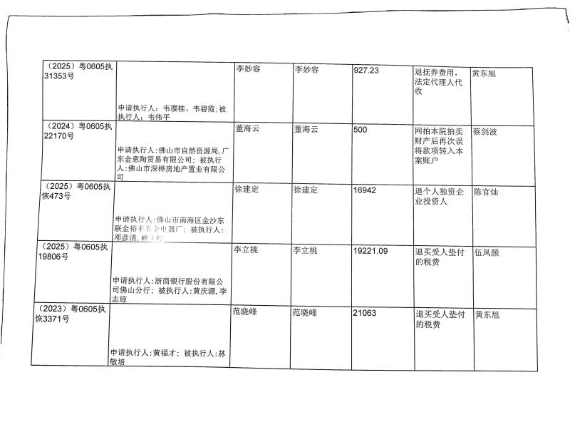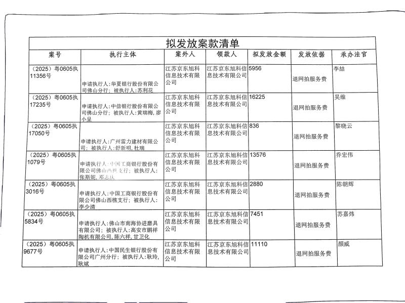 本院在执行(2025)粤0605执11356号等案件过程中,根据《最高人民法院关于执行款物管理工作的规定》,拟向下列被执行人、案外人发放案款(详见《拟发放案款清单》),现予以公示,公示期为三天。