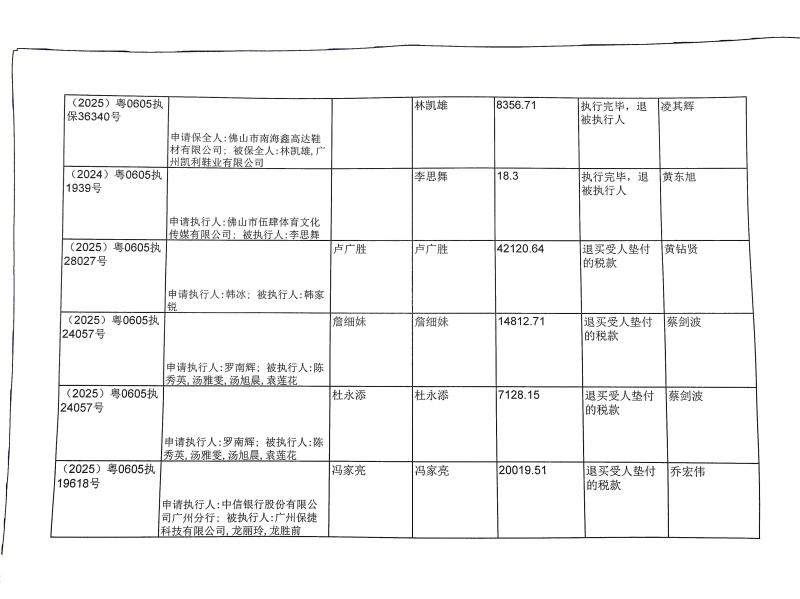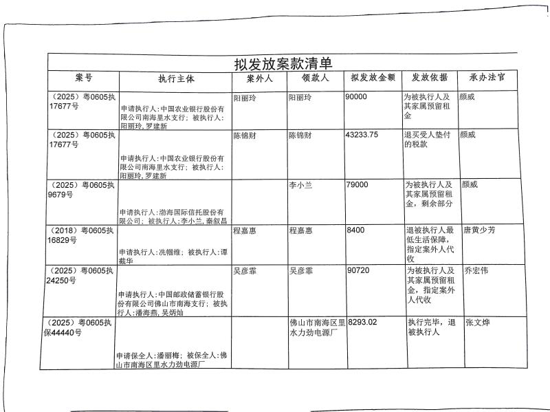 本院在执行(2025)粤0605执17677号等案件过程中,根据《最高人民法院关于执行款物管理工作的规定》,拟向下列被执行人、案外人发放案款(详见《拟发放案款清单》),现予以公示,公示期为三天。