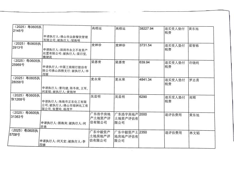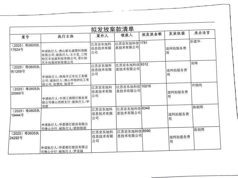 本院在执行(2025)粤0605执17624号等案件过程中,根据《最高人民法院关于执行款物管理工作的规定》,拟向下列被执行人、案外人发放案款(详见《拟发放案款清单》),现予以公示,公示期为三天。