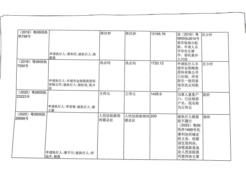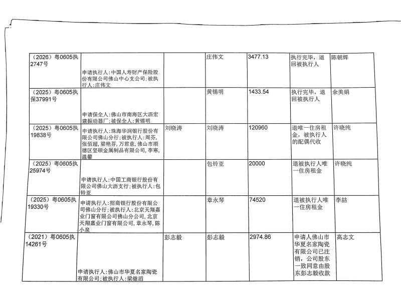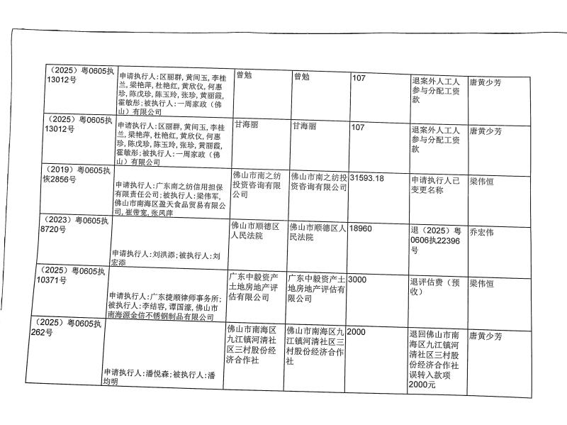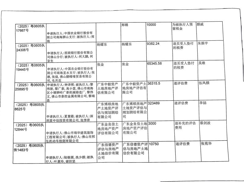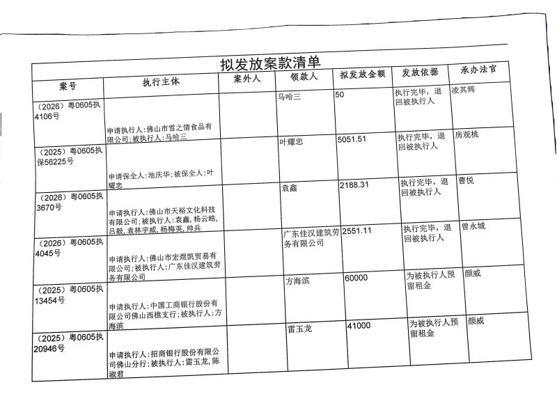 本院在执行(2026)粤0605执4106号等案件过程中,根据《最高人民法院关于执行款物管理工作的规定》,拟向下列被执行人、案外人发放案款(详见《拟发放案款清单》),现予以公示,公示期为三天。