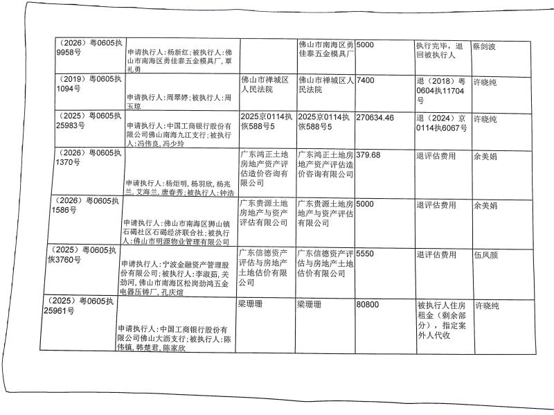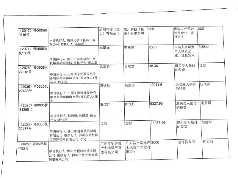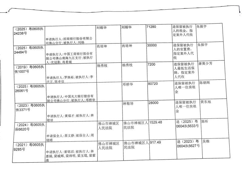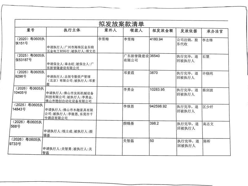 本院在执行(2023)粤0605执14843号等案件过程中,根据《最高人民法院关于执行款物管理工作的规定》,拟向下列被执行人、案外人发放案款(详见《拟发放案款清单》),现予以公示,公示期为三天。